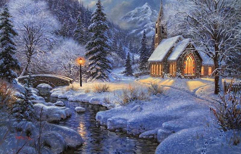 Теги: снег, религия, природа, зима, картина, домик, ангел, рождество.