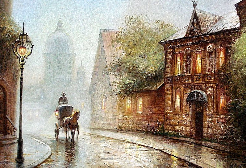 Теги: лошади, карета, животные, люди, город, пейзаж, домик.