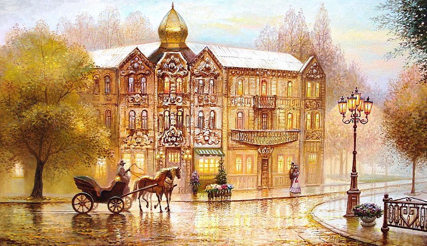 Теги: живопись, люди, городской пейзаж, картина, улица, город.