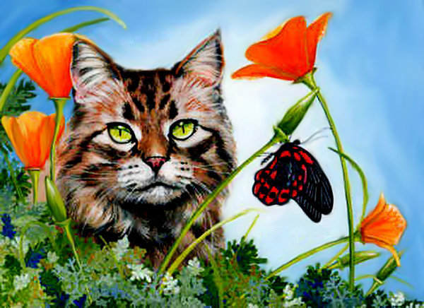 Схемы вышивки, похожие на «кот и цветы» (№540501) по сюжету