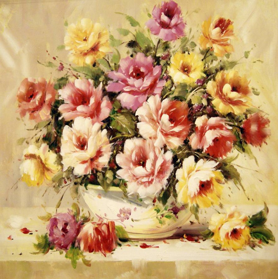 Теги: цветы, букет, натюрморт, живопись, розы, ваза.
