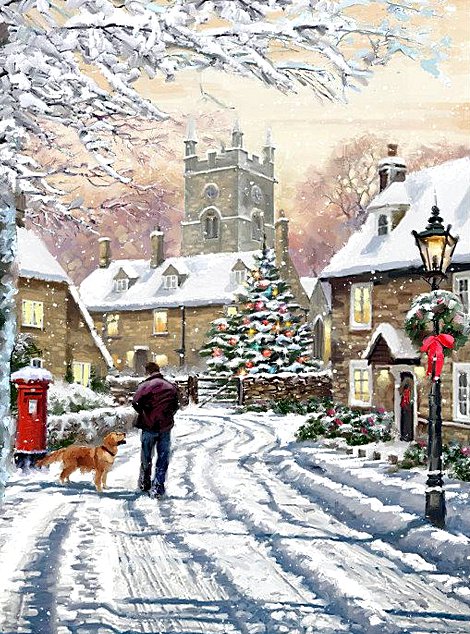 Теги: природа, картина, домик, елка, пейзаж, снег, зима.