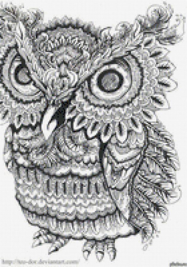 Схема вышивки «сова черно белая» (№564852)