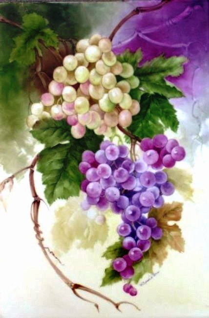 Теги: натюрморт картина фрукты корзина виноград груши.
