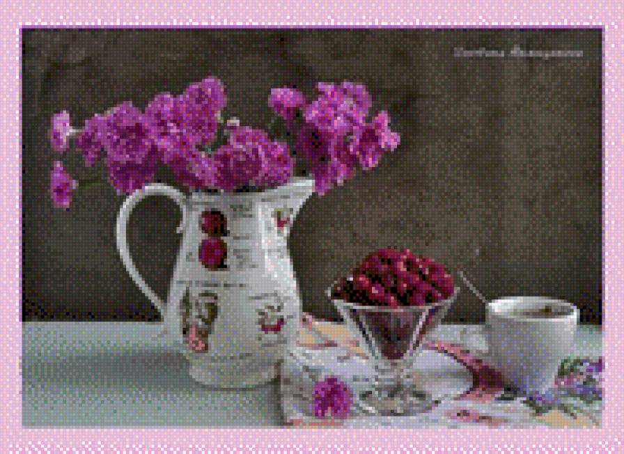 Комментарии к схеме вышивки «Натюрморт, фрукты, цветы, чашка» (№580750)