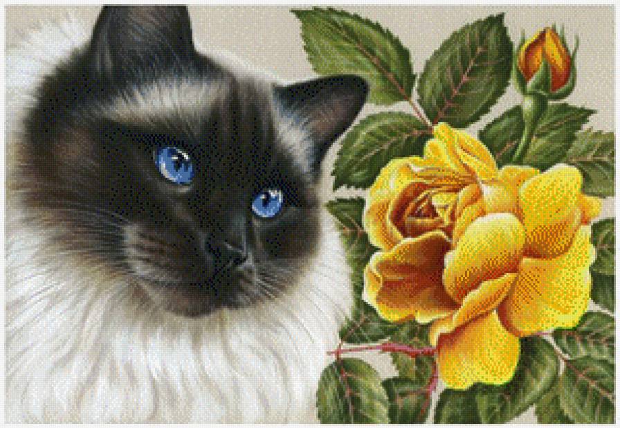 Схема вышивки «котик и желтая роза» (№585577)