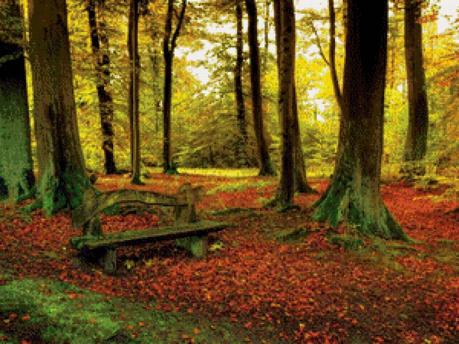 Схема вышивки «Скамейка в лесу» (№587412)