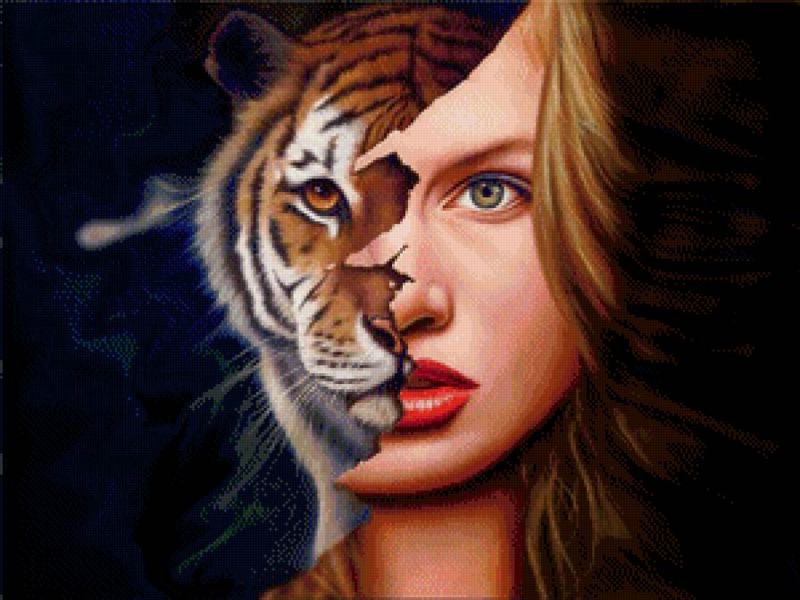 Схема вышивки «девушка-тигр» (№590868)