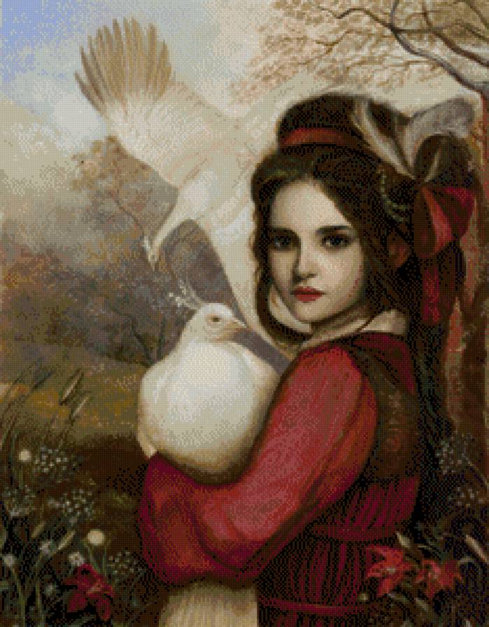 Схема вышивки «девочка с павлином» (№591341)