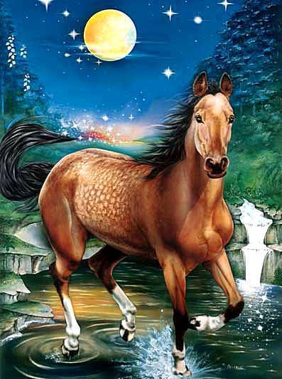 Теги: домашние животные, конь, лошади, кони, ночь, луна, лошадь.
