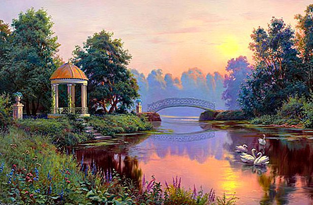 Теги: пейзаж, картина, лебеди, картины, птицы.