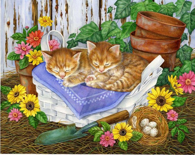 Теги: корзинка, животные, котята.