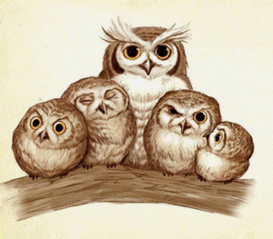 Схема вышивки «Совиная семейка» (№605117)