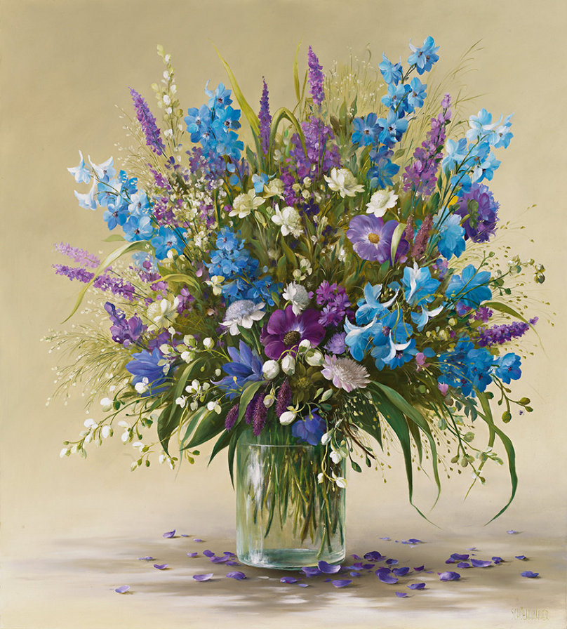 Теги: живопись, ваза, цветы, анютины глазки, нарцисс.