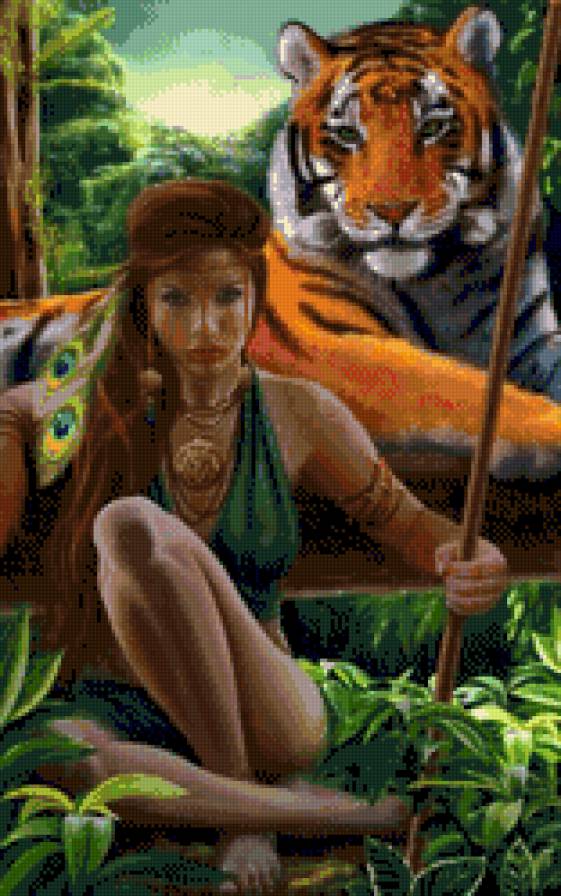 Схема вышивки «Девушка с тигром» (№624952)