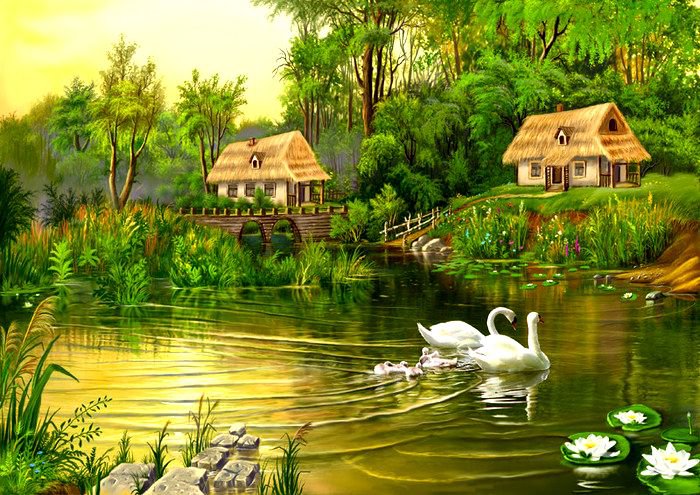 Схема вышивки «домик в деревне» (№633486)