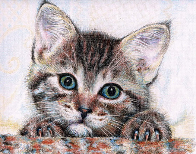 Схема вышивки «любопытный котёнок» (№639180)