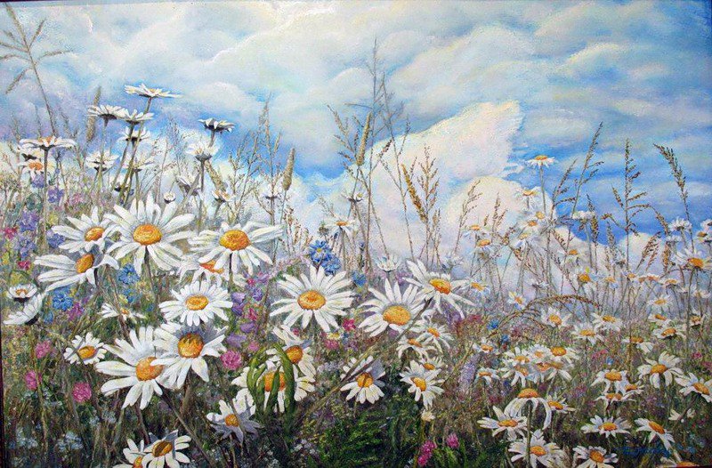 Схема вышивки «ромашки на фоне неба» (№641680)