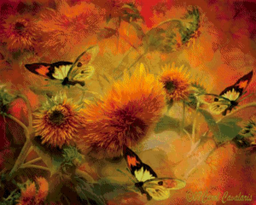 Схемы вышивки, похожие на «фантазия с бабочками и подсолнухами» (№642047) по сюжету