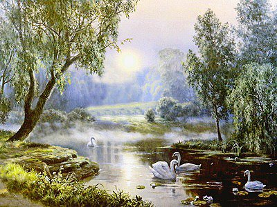 Схема вышивки «лебеди на рассвете» (№650752)