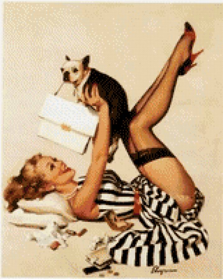 Схема вышивки «Девушка с бульдогом» (№659383)