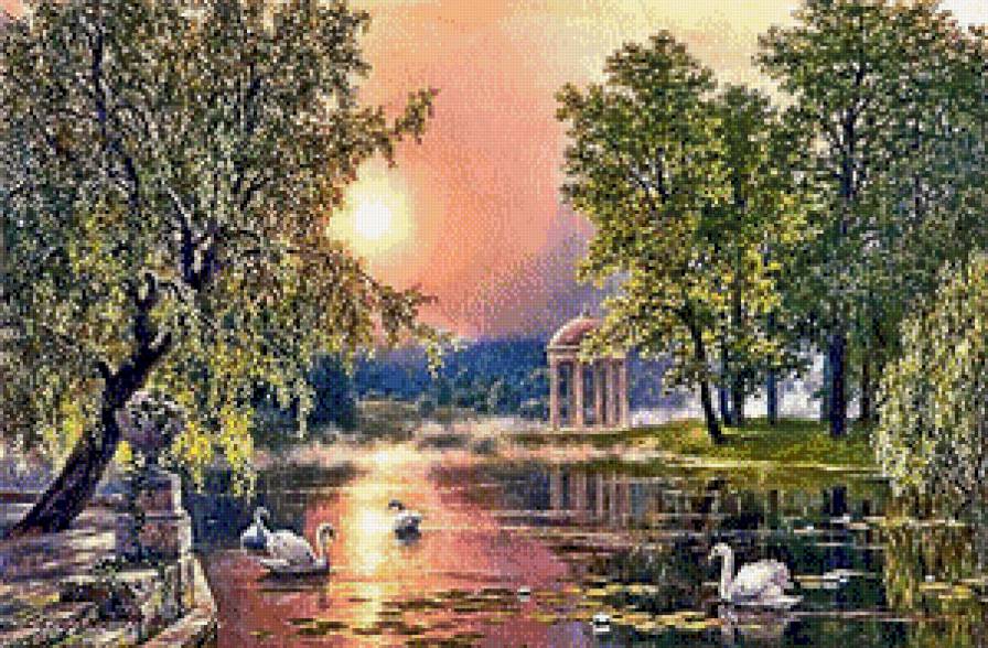 Схема вышивки «закат в парке» (№661627)