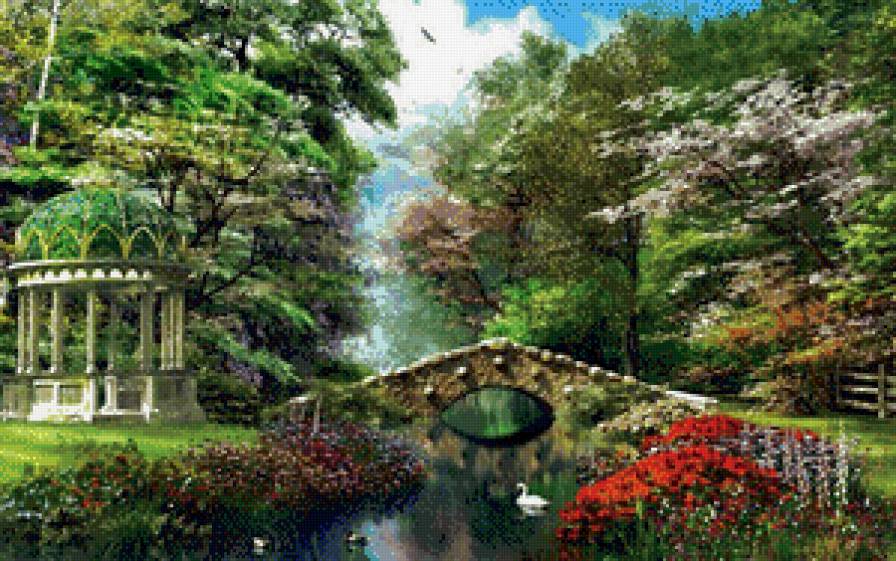 Схемы вышивки, похожие на «Мостик в лесу» (№664300) по сюжету