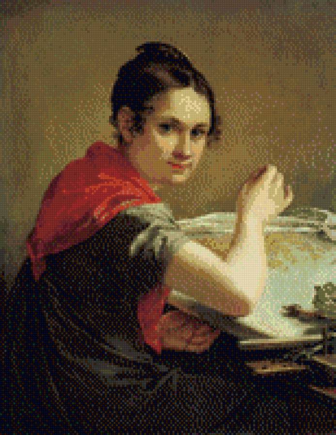 Теги: живопись, портрет, картина, вышивальщица, красавица.