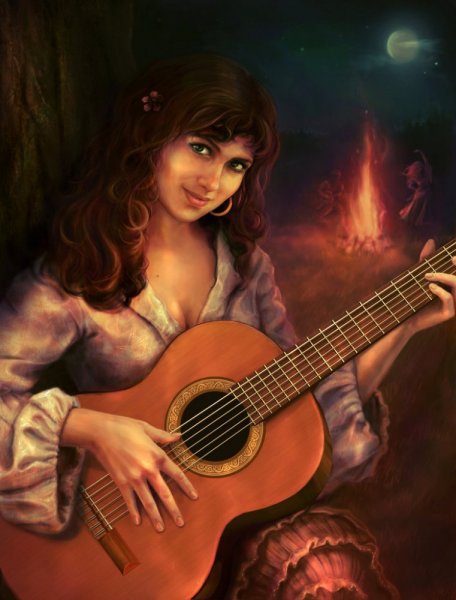Комментарии к схеме вышивки «Девушка с гитарой» (№677406)
