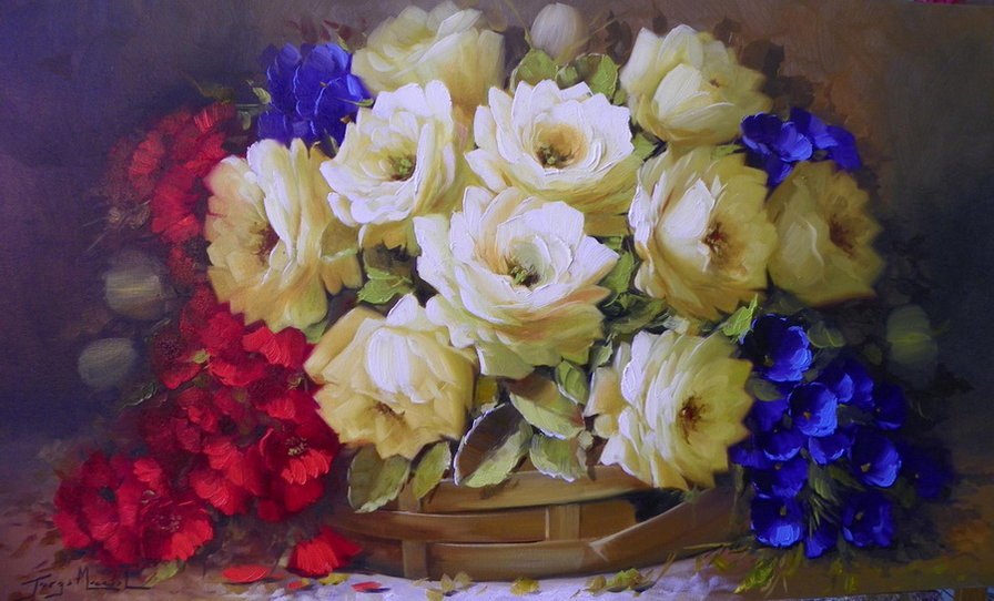 Теги: цветы в хрустале, живопись, ваза, картина, цветы, натюрморт.