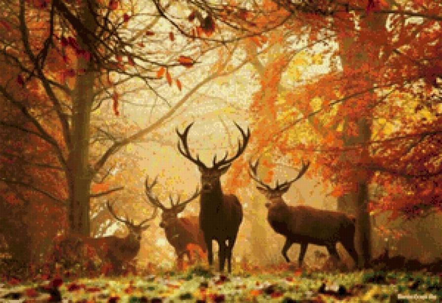 Схема вышивки «олени в лесу» (№683434)
