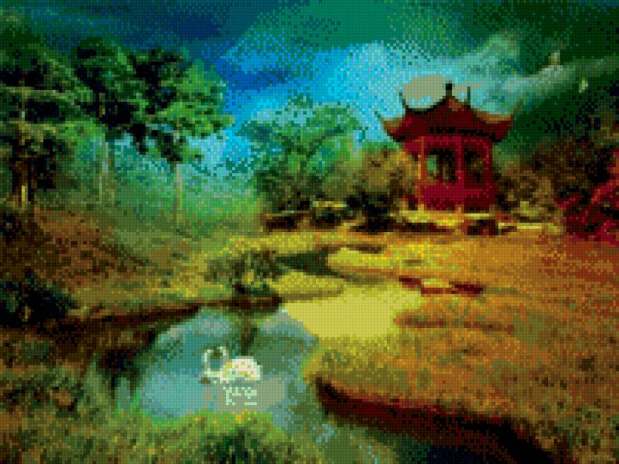 Схема вышивки «ЯПОНСКИЙ САД С ЛЕБЕДЯМИ» (№685884)