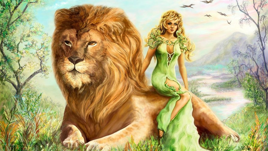 Схема вышивки «девушка и лев» (№690848)