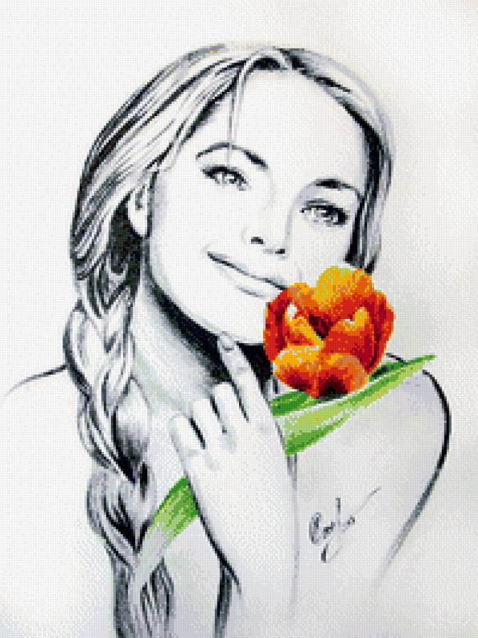 Схема вышивки «Девушка с тюльпаном» (№696928)