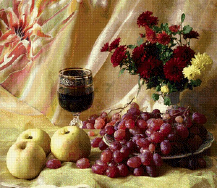 Теги: натюрморт, цветы, фрукты, живопись..