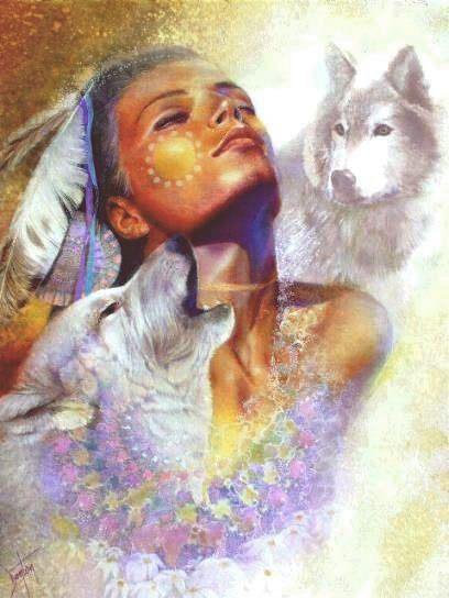 Схема вышивки «девушка и волки» (№71727)