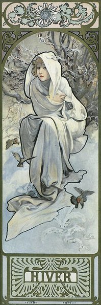 Схемы вышивки, похожие на «Альфонс Муха. Времена года. Зима (в зеленых тонах)» (№730367) по сюжету