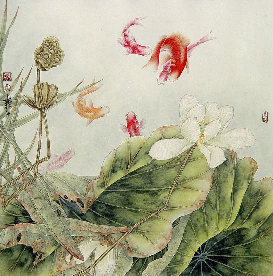 Теги: рыба, кувшинки, вода, китай, пруд, китайская живопись.