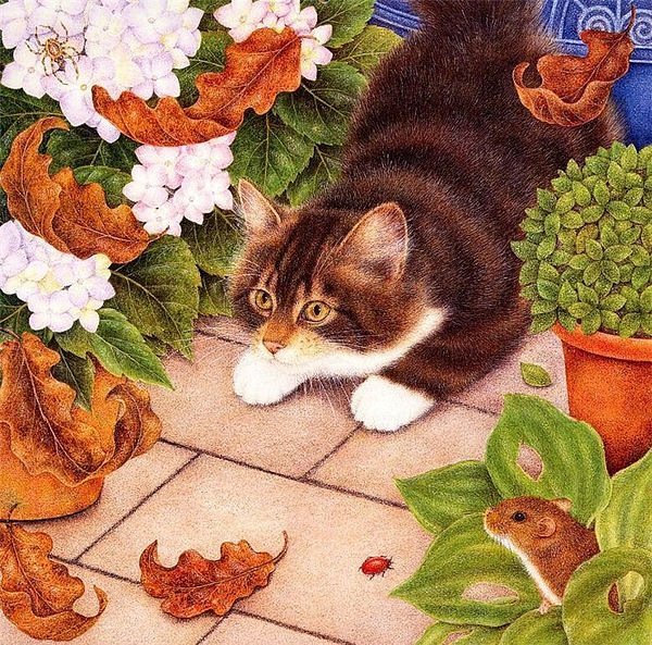 Теги: животные, цветы, рисунок, котик, котенок, кот.