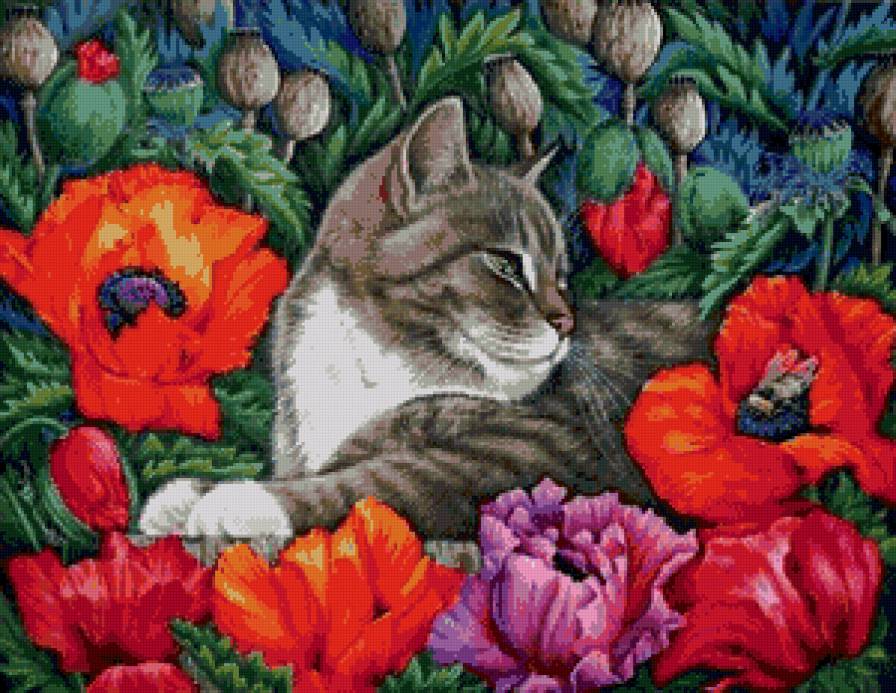 Схемы вышивки, похожие на «Кошка в маках» (№747150) по сюжету