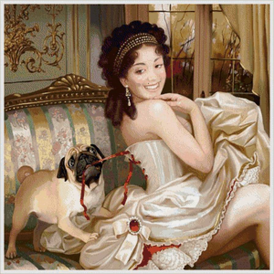 Схема вышивки «Девушка с котом» Девушка с котом