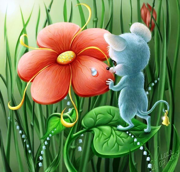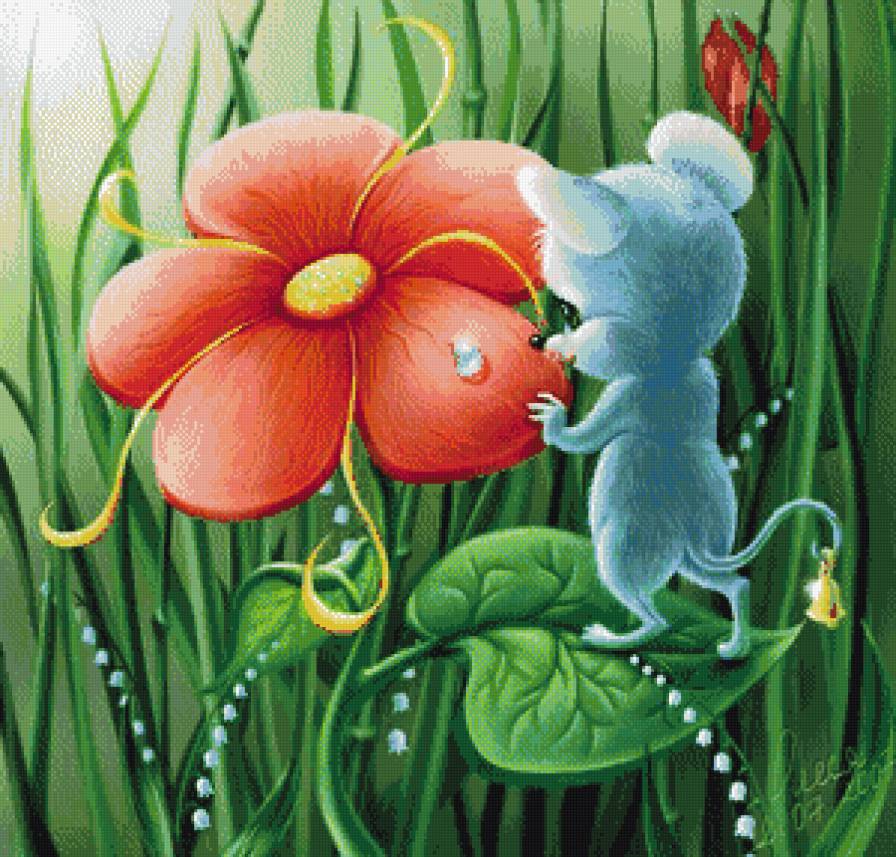Схема вышивки «Мышонок и цветок» (№753588)