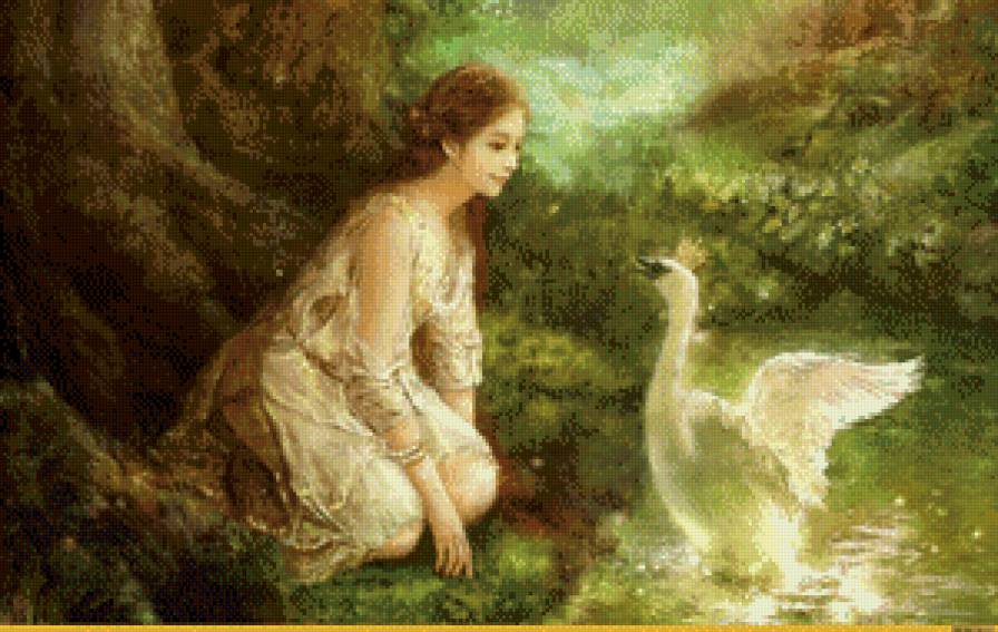 Схемы вышивки, похожие на «Девушка и лебедь» (№753941) по сюжету