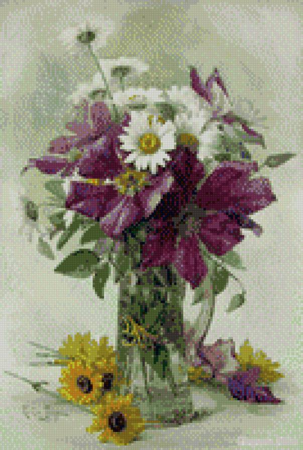 Схемы вышивки, похожие на «клематис с ромашками» (№757587) по сюжету