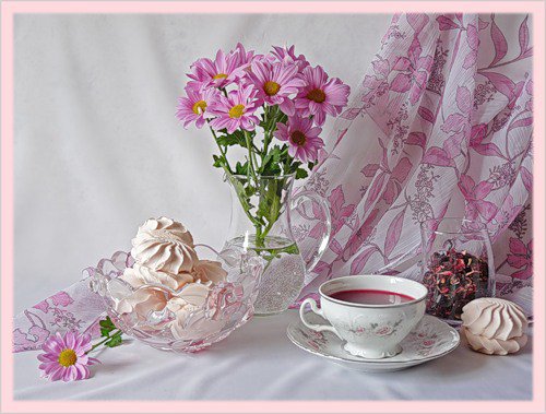 Теги: чаепитие, кухня, чай, натюрморт, чашка, ромашка.