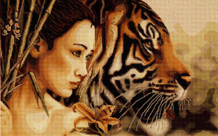 Комментарии к схеме вышивки «Девушка с тигром» (№764303)