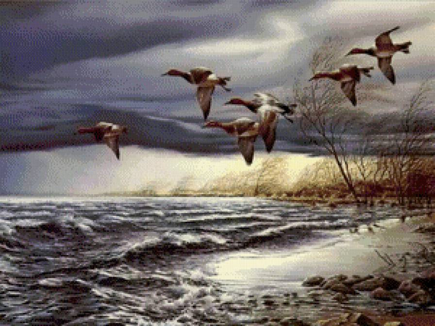 Теги: на юг, птицы, картина, живопись, перелет, анималисты, утки.