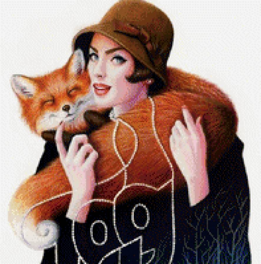 Схема вышивки «Дама с лисой» (№789188)