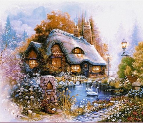 Схемы вышивки, похожие на «Сельский пейзаж в стиле ланарте» (№792397) по сюжету