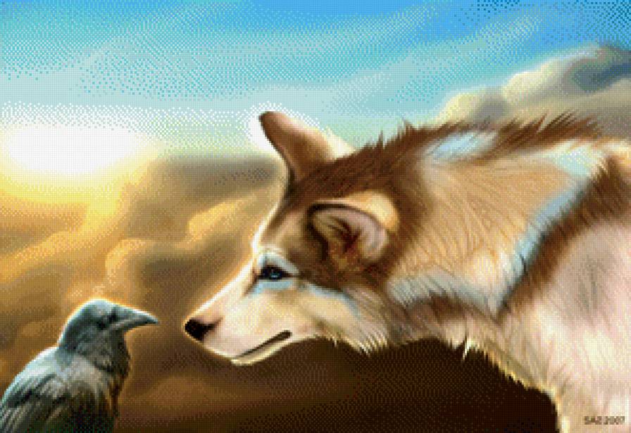 Схема вышивки «волк и ворон» (№806517)